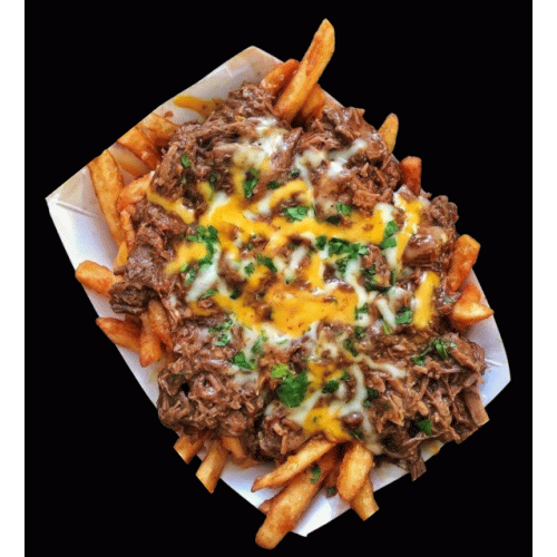Papas fritas acompañadas de pollo crispy, verdura y salsas